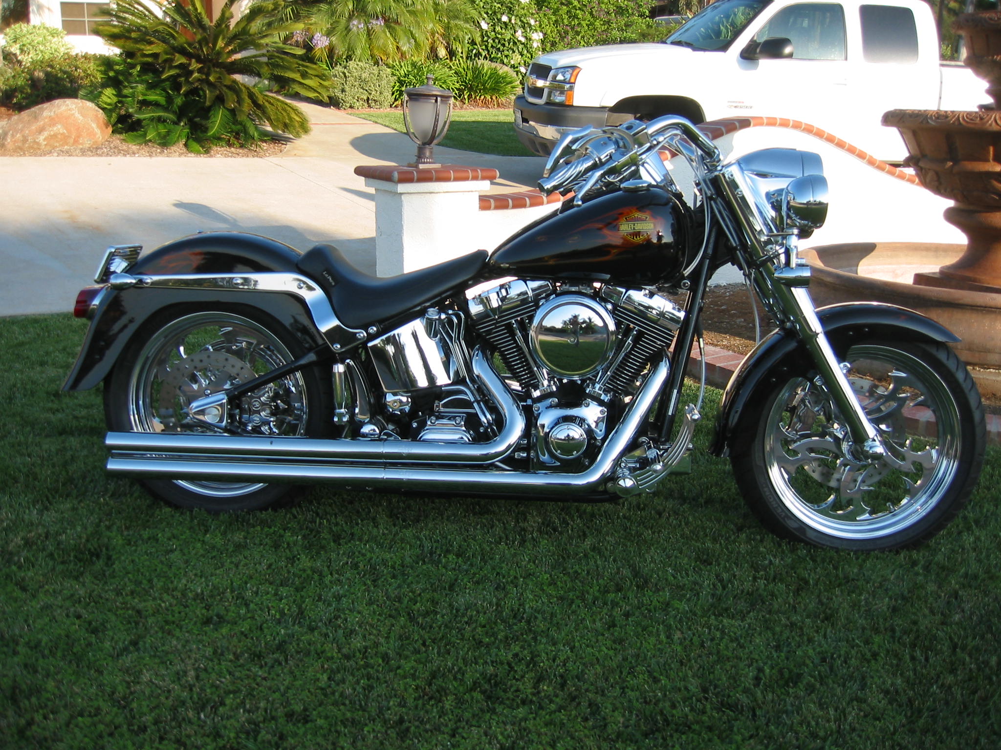 A motorcycle that has an extended front end with a greater angle than standard bikes. The term originates from the fact that early riders would cut away, or chop, unnecessary portions of the bike and frame to reduce weight. The raked front end makes for a motorcycle that is stable but not agile. Recently, these bikes have gain attention through the popularity of Jesse James of West Coast Choppers and the Tuttle family's Orange County Choppers, featured on the Discovery Channel. |